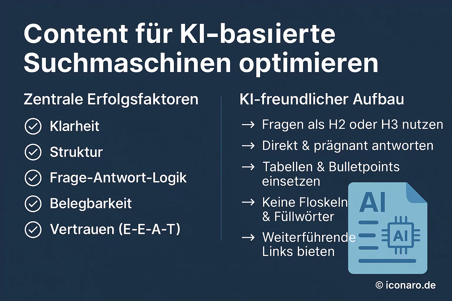 iconaro-Tipp: Schreiben Sie wie für eine smarte Zusammenfassung – nicht wie für einen SEO-Bot